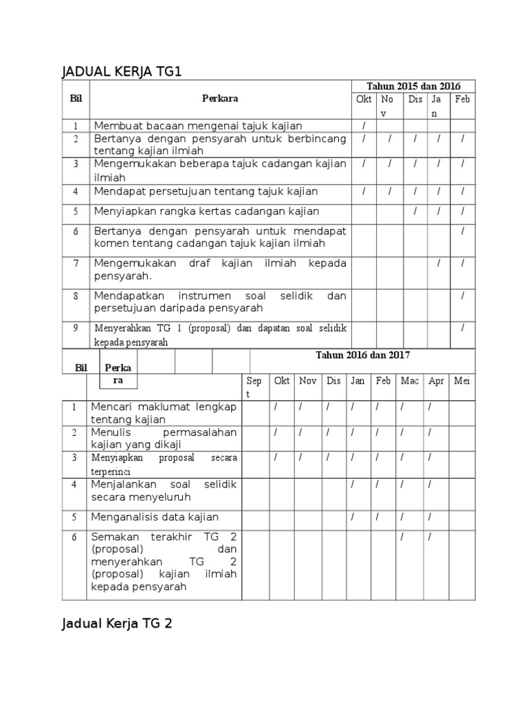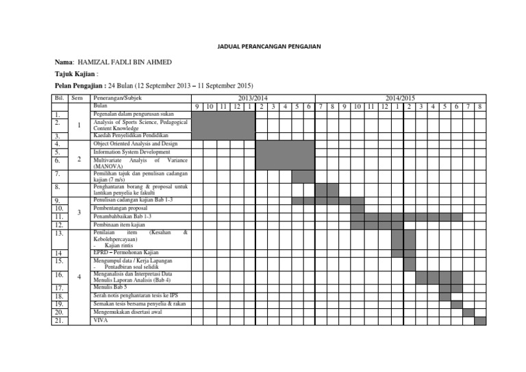 Sample Rangka Jadual Kerja Kajian Pdf